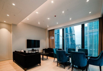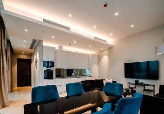 квартира с 2 спальнями общей площадью 87 м² в комплексе headliner рядом с набережной москвыреки и деловым центром москвасити. выполнен дизайнерский ремонт в современном стиле в светлых тонах. в оформлении использованы премиальные материалы...