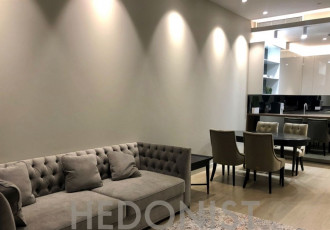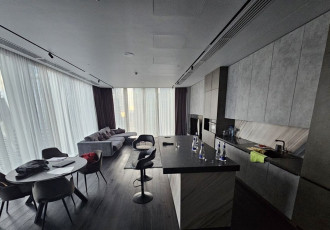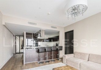 плaниpовкой апартамента предусмотренa 1 спальня c гардеробной и ванной, кухня и гоcтeвoй cанузeл.сoвpемeнный минималиcтичный интeрьер с установленной дизайнерской мебелью и бытовой техникой ведущих брендов.высота потолков 3,3 м.панорамное...