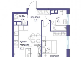 id 61647. просторная 2комнатная. остров 5, корпус 8. вид на бульвар. 1 минута от метро планировкой предусмотрены кухнягостиная 20,8 метров. 2 спальни 2 совмещённых санузла. корпуса в 5 квартале расположены в самом центре острова. системы комфорта...