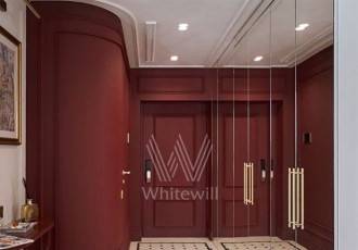 видовые апартаменты в комплексе бизнескласса стремянный 2.интерьер оформлен по проекту архитектурного бюро, опубликован в международном журнале по дизайну. в холле на полу выложена французская плитка, бордовые стены украшает декоративное панно...