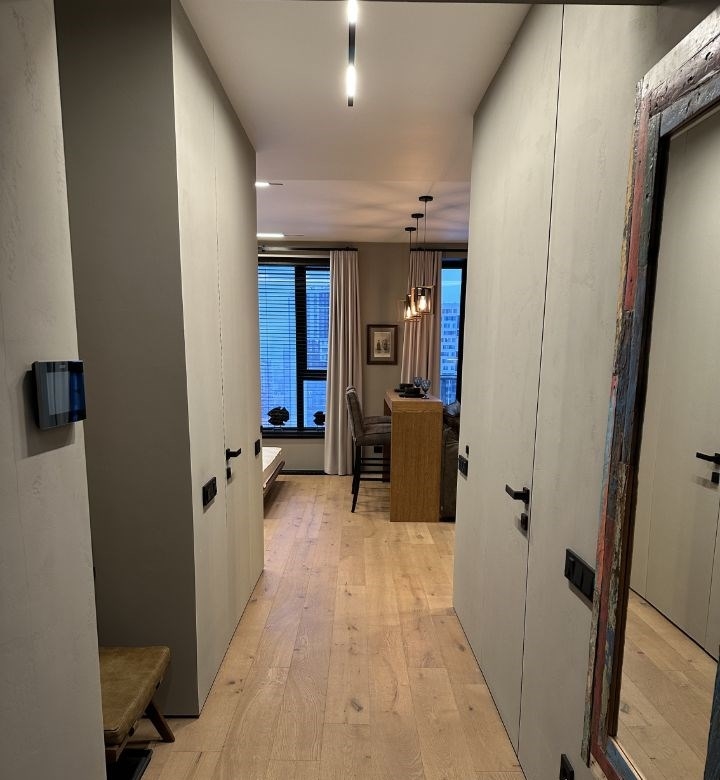 без комиссии от собственника вы будете первым арендатором никто не жилстильная видовая студия с качественным дизайнерским ремонтом.напольное покрытие паркетная доскастены декоративная штукатуркамебель массив тика и шпон дубамягкая мебель натуральная кожа.большая кровать ширина 180 см с матрасом ormatek.электроника большой тв 65, воздухоочиститель увлажнитель dyson, стереосистема harmankardon и система кондиционирования воздуха.кухонная техника холодильник, посудомоечная машина, свч, вытяжка, духовой шкаф, индукционная плита, электрический чайник bork, капсульная кофемашина и система питьевой воды осмос.кухня укомплектована всей утварью от приборов до кастрюль.гардероб пылесос, утюг, стиральная и сушильная машины asko. санузел теплый пол, теплая стена, фен и электрический проточный водонагреватель.инфраструктура до станции метро народного ополчения 20 минут спокойным шагом природный заповедник серебренный бор в соседнем доме азбука вкуса на первом этаже популярные маркетплейсы.а также, имеется возможность арендовать одно машиноместо за отдельную плату.
