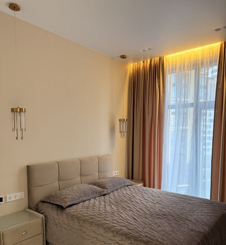 прямая сдача от собственника новая квартира евро2ка с дизайнерским ремонтом на 4 этаже в жк бизнескласса зорге 9. агентства, просьба не беспокоитьуютная светлая квартира с панорамными окнами вид во двор, полностью меблирована и укомплектована для проживания. ремонт делали для себя, но приняли решение сдавать в связи со сменой обстоятельств. для ремонта использовались премиальные отделочные материалы и дорогая сантехника. внутрипольные радиаторы отопления, по всей площади площади квартиры установлены умные датчики управления теплым полом. просторная кухнягостиная с большим угловым раскладным диваном, телевизором 55, дизайнерским мраморным столом с возможность посадки до 8 персон и 4 стула. кухня укомплектована встраиваемой техникой gorenje холодильник, варочная поверхность, духовой шкаф и микроволновая печь, посудомоечная машина и вытяжка.спальная комната вмещает двуспальную кровать с системой хранения и новым ортопедическим матрасом askona, просторный шкаф для хранения и две прикроватные тумбы с локальным освещением.в ванной комнате установлена широкая ванна с современной душевой системой и стеклянной шторой, инсталляция с подвесным унитазом, фурнитура и сантехника известных мировых производителей, а также подвесная тумба с раковиной и большим зеркалом и подсветкой. стиральная и сушильная машины от delonghi.в прихожей вместительный зеркальный шкафкупе под потолок и кондиционер.в жк имеется консьержсервис, пропускная система, детская площадка, ландшафтный дизайн двора и развитая ифраструктура, в т.ч. и в соседнем жк. свой фитнесклуб премиумкласса с большим бассейном.рассматриваем только аренду на длительный срок от года без животных.