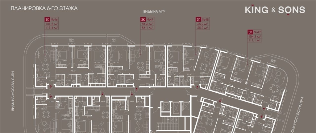 king sons это клубный дом на 117 резиденций премиумкласса, расположенный на престижной и исторической улице мосфильмовская. из большинства квартир открываются панорамные виды на мгу, москвусити, особняки посольств и парки. это место для тех, кто не хочет выбирать между комфортом мегаполиса и уединением на природе.проект разработан японским архитектурным бюро nikken. фасады из натурального камня, мягкие формы здания, максимально открытое остекление, окна в пол все это делает облик здания выразительным и уникальным.в проекте предусмотрено 70 квартир с террасами. потолки от 3,2 до 4,7 м. паркинг на 110 машиномест.для будущих резидентов продуманы разнообразные общественные пространства зимний сад в лобби первого этажа, секретный сад с зоной открытого огня, лаунджзона с кинотеатром на крыше, собственный спортзал, зоны для занятий йогой и медитацией.king sons это фамильная недвижимость, которую с гордостью передают по наследству, как искусство и бриллианты.
