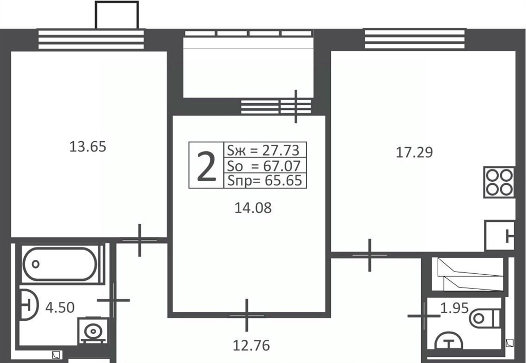 2комн. кв., 65,65 кв.мпродажа квартира, полярная улица, земельный участок 16, этаж 2, кв. 3